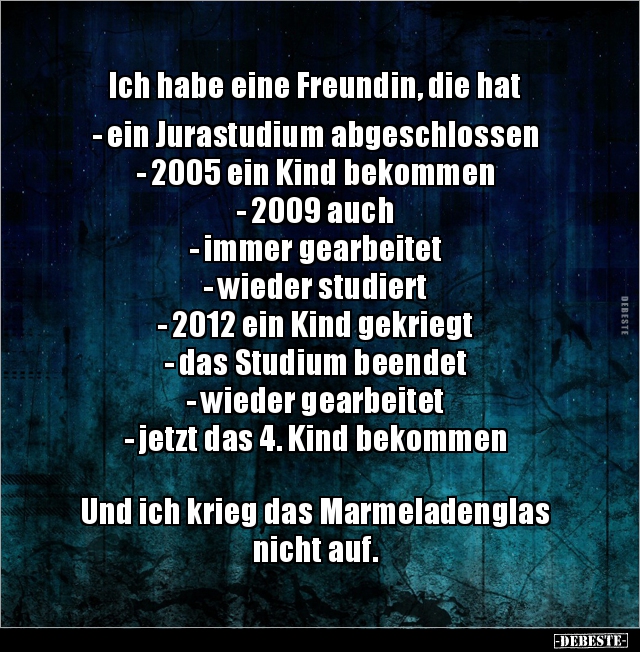 Da antwortet sie: "Mein Ex und ich,wir waren zwanzig Jahre verheiratet und jetzt sagt er, ich bin ihm zu alt und ist mit einer achtzehn jährigen nach Australien durchgebrannt. Gestern hat er mir eine Karte geschickt, ich soll den Ferrari verkaufen und ihm das Geld als Startkapital nach Melbourne überweisen."