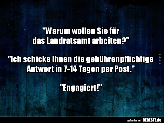 Lieber Penis, nach der sorgfältigen Prüfung Ihres Antrages, ist die Kommission zu dem Entschluss gekommen, selbigen aus folgenden Gründen abzulehnen: 1. Sie arbeiten keine 8 Stunden durch, 2. Sie schlafen nach kurzer Arbeitszeit ein, 3. Sie folgen nicht immer den Anweisun-