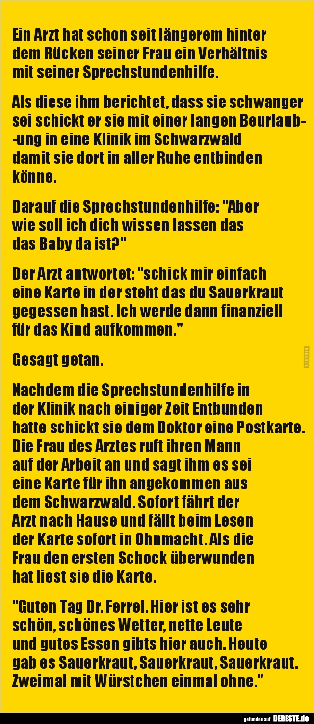 "Verdammt noch mal, sagt der Doktor, dann stellen sie endlich fest, in wessen Hintern mein Kugelschreiber steckt".