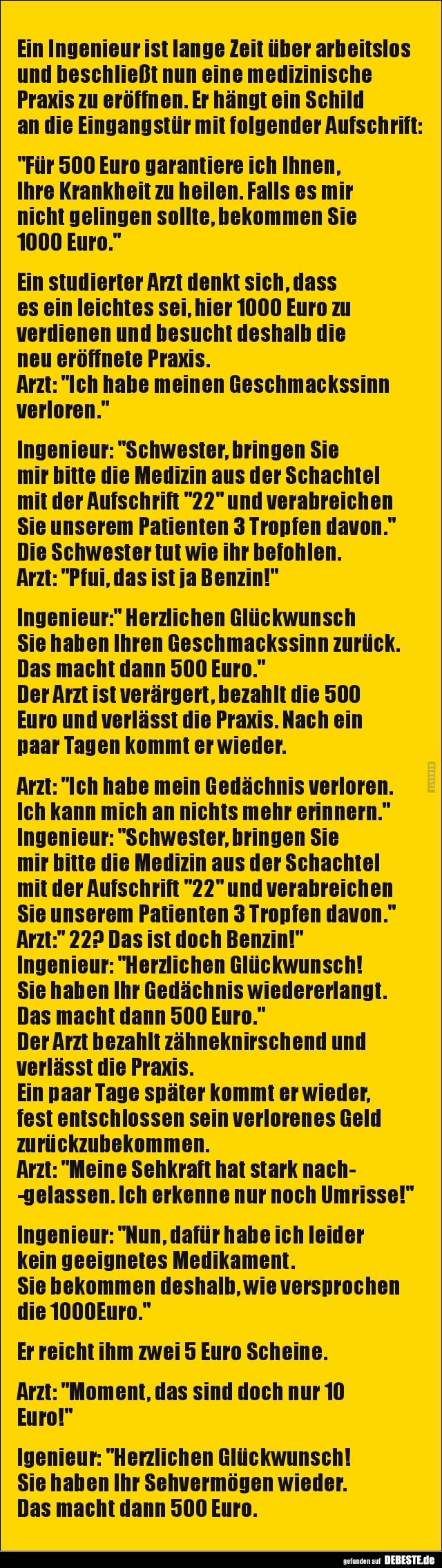 Ingenieur:" Herzlichen Glückwunsch Sie haben Ihren Geschmackssinn zurück. Das macht dann 500 Euro."