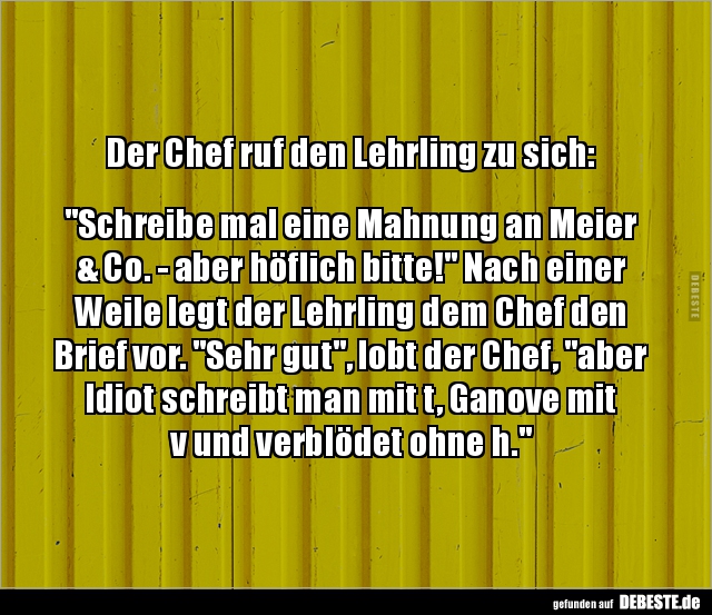 -gen des Managements, 4. Sie arbeiten nicht immer dort wo sie angewiesen werden, sondern halten sich öfter in anderen Gegenden auf, 5. Sie ergreifen nicht die Initiative, sondern müssen unter Druck gesetzt und freundlich behandelt werden, bevor Sie überhaupt anfangen zu arbeiten, 6. Sie hinterlassen ihren Arbeitsplatz ziemlich dreckig, 7. Sie halten sich nicht immer an die Sicherheitsanweisungen, z.B. das Tragen von Schutzkleidung, 8. Sie gehen lange vor 65 in Rente, 9. Sie verlassen manchmal den Ihnen zugewiesenen Arbeitsplatz, ohne die Arbeit beendet zu haben, 10. Und als ob das noch nicht genug wäre, haben wir Sie auch noch ständig den Arbeitsplatz verlassen sehen, in Begleitung von zwei sehr verdächtig aussehenden Säcken.