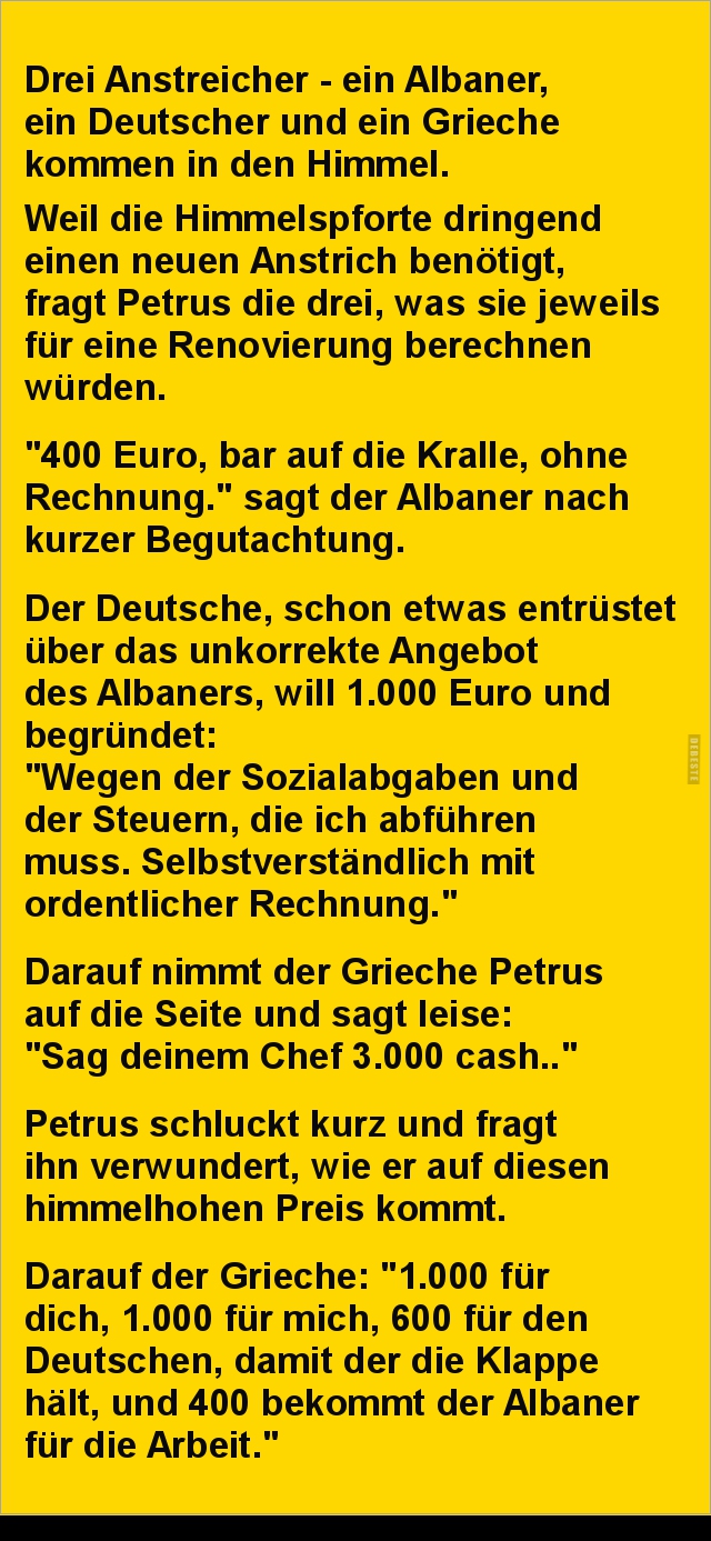 Drei Anstreicher - ein Albaner, ein Deutscher und ein Grieche kommen in den Himmel.