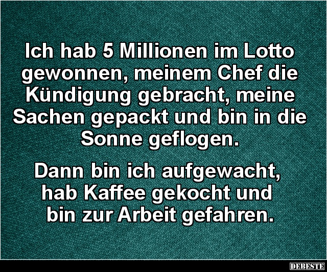 Als ich dann 10 Millionen € im Lotto gewonnen habe, habe ich meine
