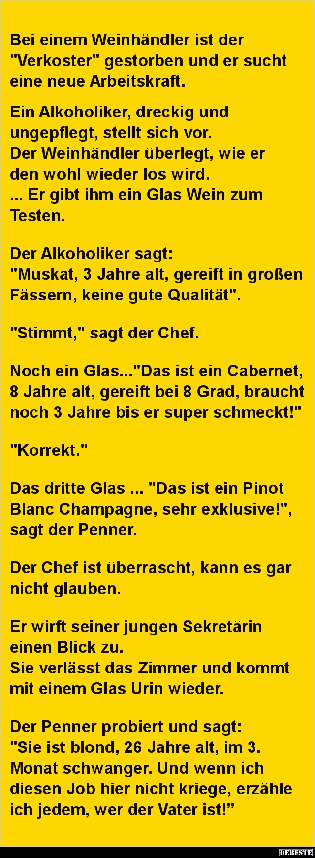 Der Weinhändler überlegt, wie er den wohl wieder los wird.