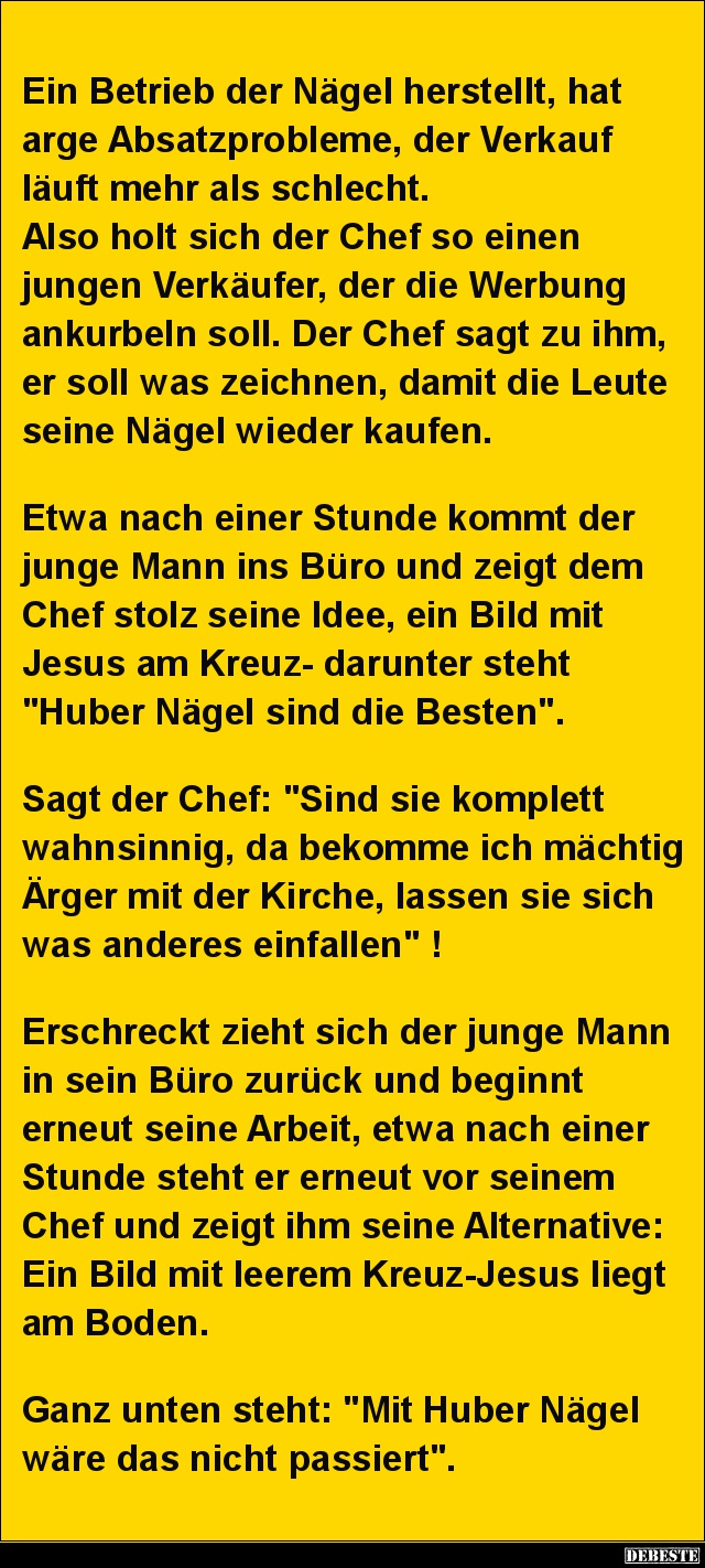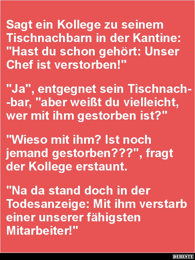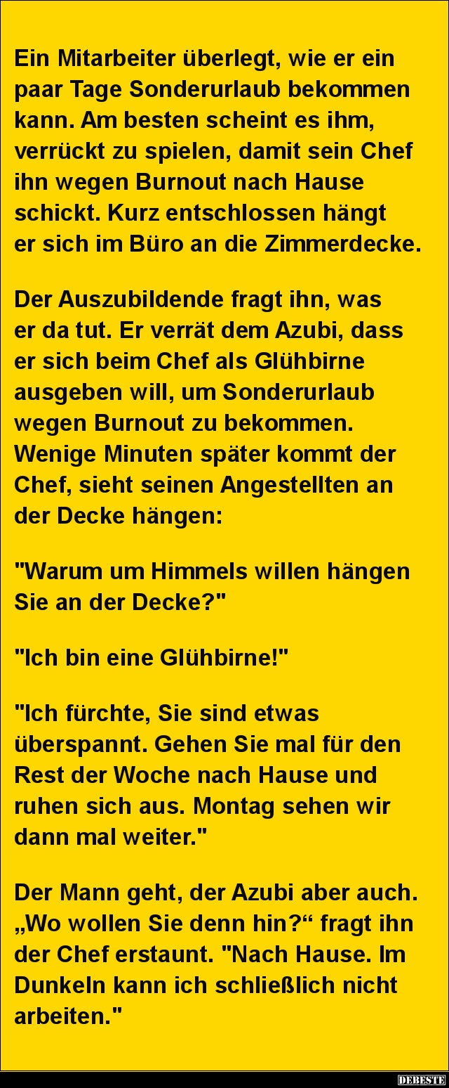 Er hängt sich also im Büro an die Zimmerdecke. Da fragt ihn seine