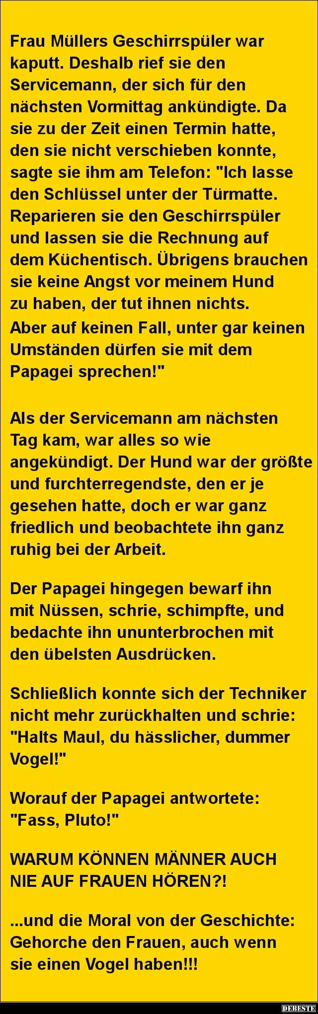 ...und die Moral von der Geschichte: Gehorche den Frauen, auch wenn sie einen Vogel haben!!!