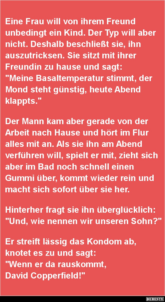 Als ihr Mann am Abend heimkommt, sieht er auf dem Bett ein