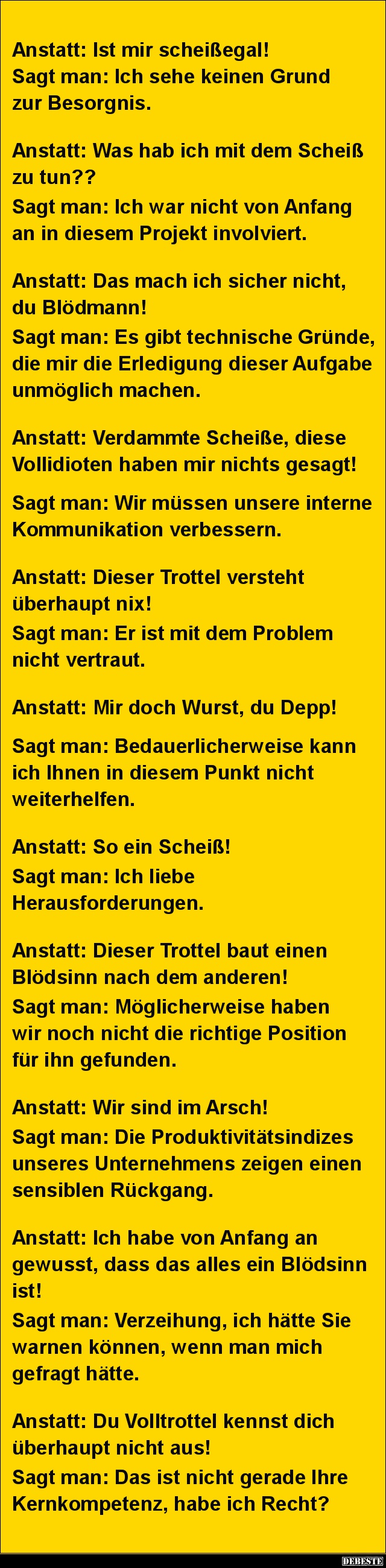 "Sehen Sie Frau Müller, in meiner Branche sollte sich ein Mann immer Zeit nehmen. Ich könnte in 5 Minuten rein und wieder raus sein, aber dann wären Sie
