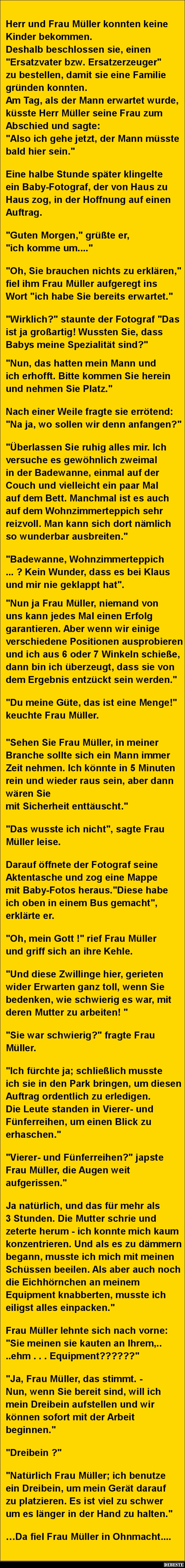 "Wirklich?" staunte der Fotograf "Das ist ja großartig! Wussten Sie, dass Babys meine Spezialität sind?"