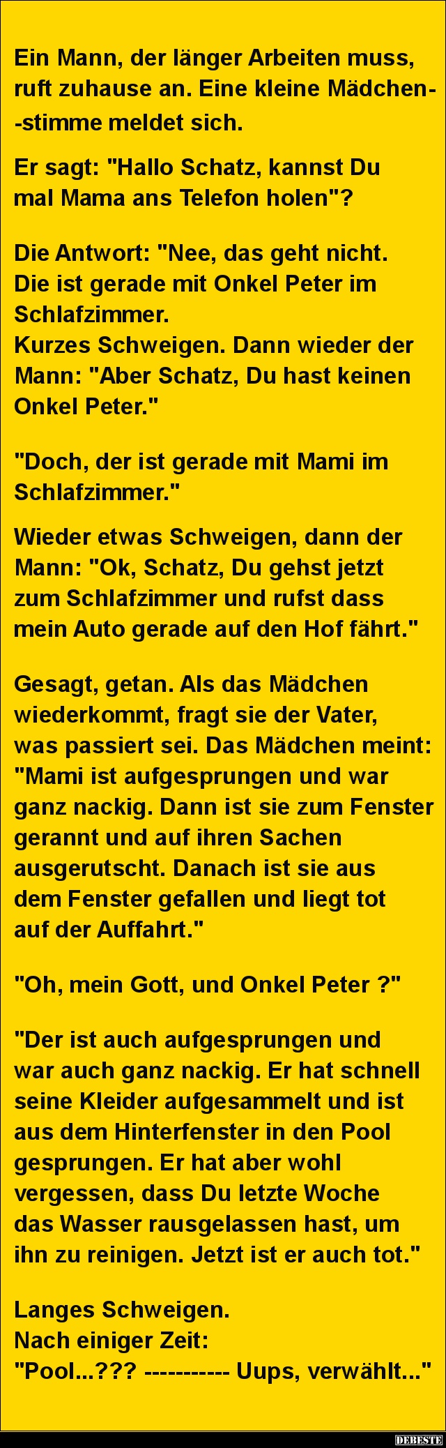 Kurzes Schweigen. Dann wieder der Mann: "Aber Schatz, Du hast keinen Onkel Peter."