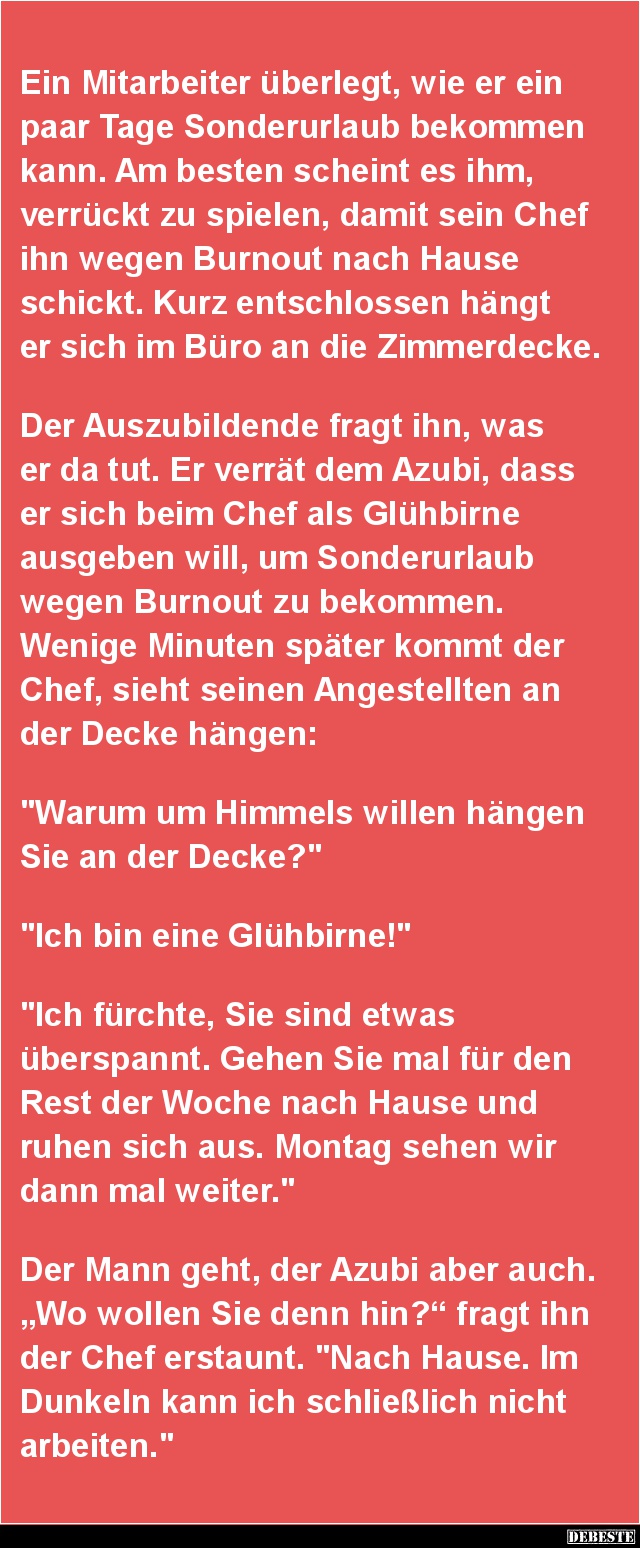 Alle Mitarbeiter können ihn sehen und der Chef denkt, hier hat er eine gute Gelegenheit den Mitarbeitern zu zeigen, dass er Faulheit nicht