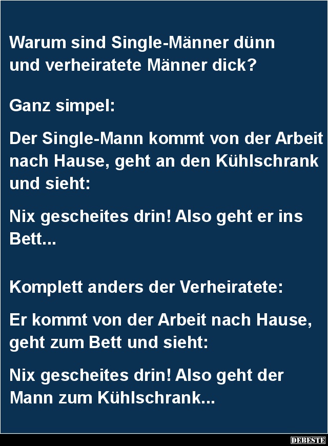 Geschichte! Ich dachte schon immer, meine Frau betrügt mich. Also komme ich überraschend 3 Stunden früher von der Arbeit - renne wie wild die sieben Stockwerke zu meiner Wohnung rauf, reiße die Tür auf, suche wie ein Wahnsinniger die ganze Wohnung ab. Und - auf dem Balkon finde ich einen Kerl und der hängt am Geländer. Also, ich einen Hammer geholt, dem Sack auf die Finger gehauen, der fällt runter und...landet direkt auf einem Strauch und steht wieder auf...die Sau. Ich zurück in die Küche, greife mir den kompletten Kühlschrank und schmeiß das Ding vom Balkon: TREFFER! Nachdem die Sau nun platt ist, bekomm ich von dem ganzen Stress einen Herzinfarkt."