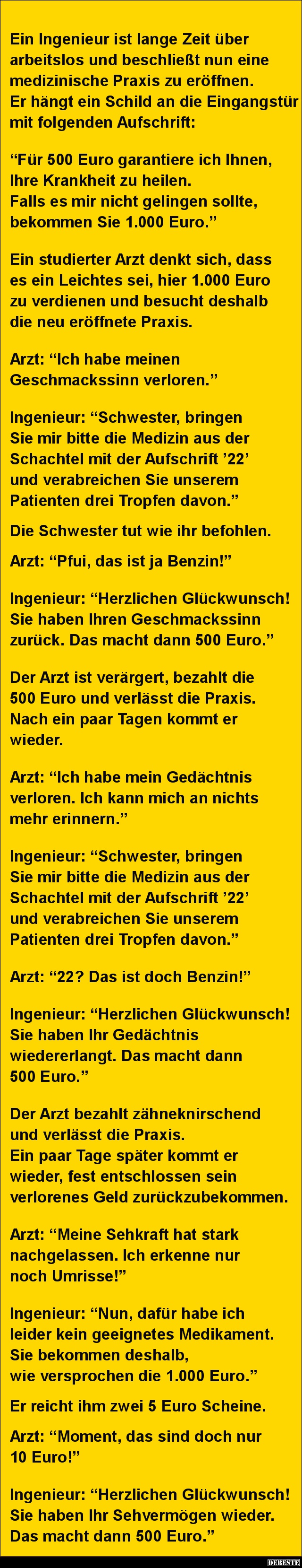 Ingenieur: “Nun, dafür habe ich leider kein geeignetes Medikament. Sie bekommen deshalb,