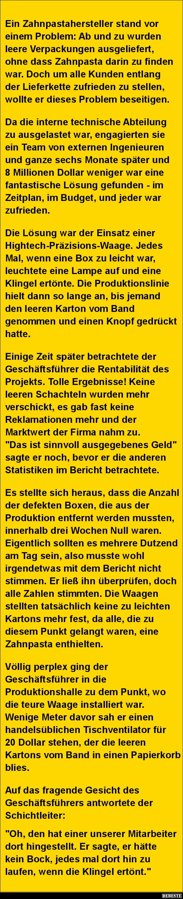 Einige Zeit später betrachtete der Geschäftsführer die Rentabilität des Projekts. Tolle Ergebnisse! Keine leeren Schachteln wurden mehr