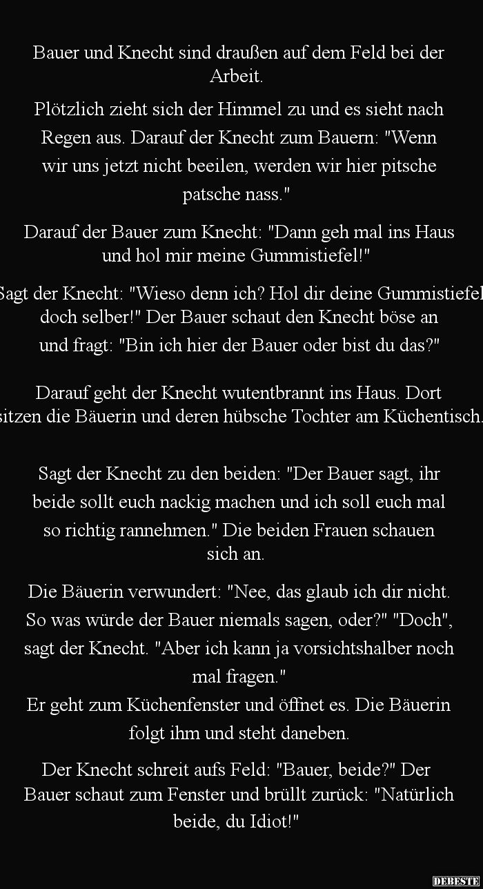 Horst ging auf den Deal ein. Dagmar erklärte ihm, dass ihr Ehemann Anton Freitags immer etwas länger arbeiten würde und Horst um zwei Uhr bei ihr vorbeischauen sollte.